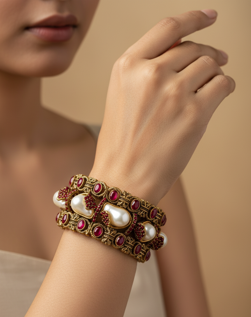 ✅ Elegant Combo: Stylish Vintage Potli paired with a classy Turkish Bangle 👛💫