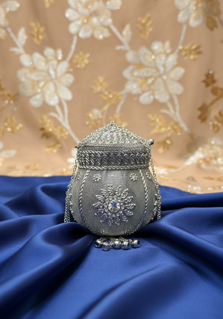 ✨ Vintage Potli – Silver & Golden Elegance ✨